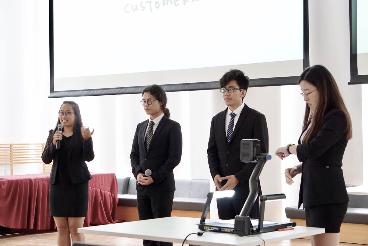 整场赛事分为两轮,十支队伍按照抽签顺序在规定时间内拿到相同的案例材料,在无网络、无电子设备的情况下分配运用两个小时的时间完成对企业运营状况的分析、找出问题与重点并以数据支撑的战略对其进行改进,最终用10分钟的时间全英文地向各位评委进行展示报告以及用5分钟的时间回答来自评委的提问。第一轮结束后排名前四的四支队伍进入下午的决赛,比赛规则同第一轮。我校beat365英国官网网站参赛队伍以周密的准备、有效可行的战略创想以及生动的演示获得评委们的认可,最终获得优胜奖。