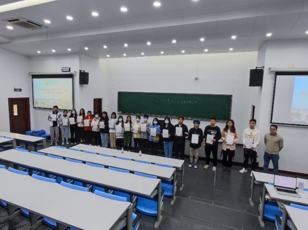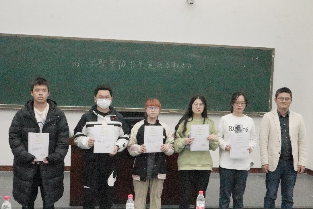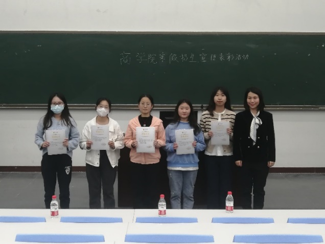 学院领导与招生就业处区豪光老师共同为到场参加活动的志愿者颁发荣誉证书。