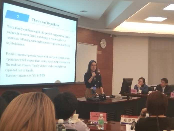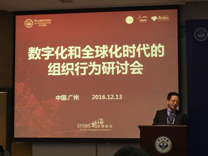 2016年12月13日,第五届中山大学前沿管理研究国际研讨会于中山大学管理学院顺利召开,本次会议主题是“数字化和全球化时代的组织行为”。beat365英国官网网站教授林泉及其研究生、同事合作的论文“The Impact of Work-Family Conflicts on Employee Performance and Organizational Citizen Behavior: As Mediated by Family Well-Being”被会议收录,林泉教授的研究生黄应嫦、张颖作为代表受邀于会议上对文章进行报告。