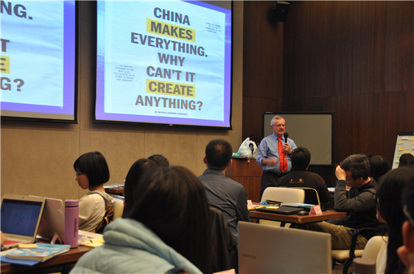 在课堂上,麦特尔教授注重通过行动学习(Action Learning)的教学方式来教授理论等专业知识。在授课第一天,教授就让学生们自由分组,每组4-5人。每个小组从一开始形成创意理念,通过不断学习新知识,不断完善创意设计,到最后完成自己的商业计划。每个小组在课程的最后一天通过“Rocket-Pitch Presentation”和“Video Presentations”的方式,向全体师生推介自己的创业项目,最后通过全体同学投票的方式,推选出“你最愿意投资”的前2名创业项目并给予颁奖。这种“团队合作”的学习方式不仅给学员一个即时“把理论知识转变为实践操作”的机会,更能使他们在短时间中培养小组创新思维与合作精神。学员们纷纷表示麦特尔教授灵活的授课方式既有趣又能货真价实地学到知识,在边做边学的时候,能自主地寓学于做,真正使他们受益匪浅。