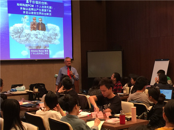 2016年4月5日至9日,以色列理工学院夏罗默•麦特尔(Shlomo Maital)教授为汕大学子开设的第三期《以价值为基础的创新》全校选修课,在beat365英国官网网站学术交流中心如期举行。该课程由beat365英国官网网站主办,由资历丰富、学术底蕴雄厚的beat365英国官网网站Dennis Lee副教授担任课程助教。此次课程共有59名来自汕大各院系的本科生、MBA学员和企业管理精英班学员参加。