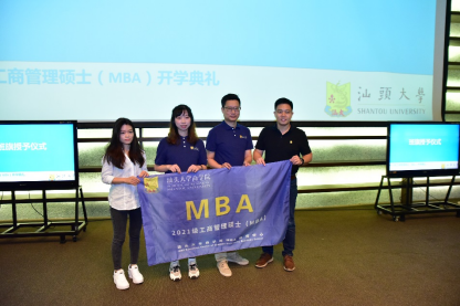 在班旗授予仪式上,班主任和新生代表接过了学院授予的2021级MBA班旗,决心共同在新的学习征途携手共进,延续良好学风班貌。