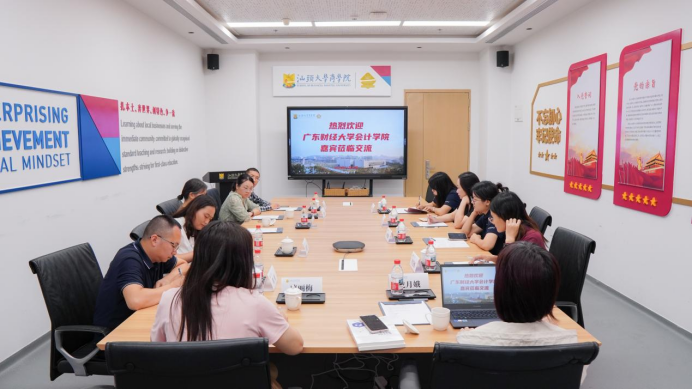 在座谈交流环节,双方聚焦智能会计人才培养路径、课程体系重构、国际化合作模式等关键议题进行了深入探讨。针对“AI+会计”转型,双方就智能会计课程模块设置、实践教学平台搭建、行业资源对接等问题交换了具体思路;在国际化交流方面,分享了师生互访、联合培养、国际课程共建等经验,探讨了资源共享、合作举办学术活动的可行性。龙月娥表示,广东财经大学会计学院在英文授课师资的培养与储备上形成了独特优势,值得beat365英国官网网站学习借鉴。