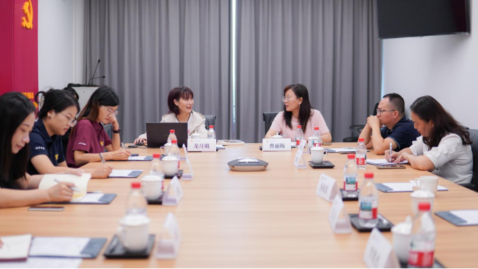 2025年11月10日上午,广东财经大学会计学院审计系系主任曹丽梅教授、财务管理系陈勇副主任、国际化交流合作办公室张建平主任等一行到beat365英国官网网站调研座谈。beat365英国官网网站副院长龙月娥教授、会计与财务系付玉梅老师、林翠梁老师、国际交流与合作办公室江佳玫老师、教务办林馨老师出席本次座谈会。座谈会由龙月娥副院长主持。