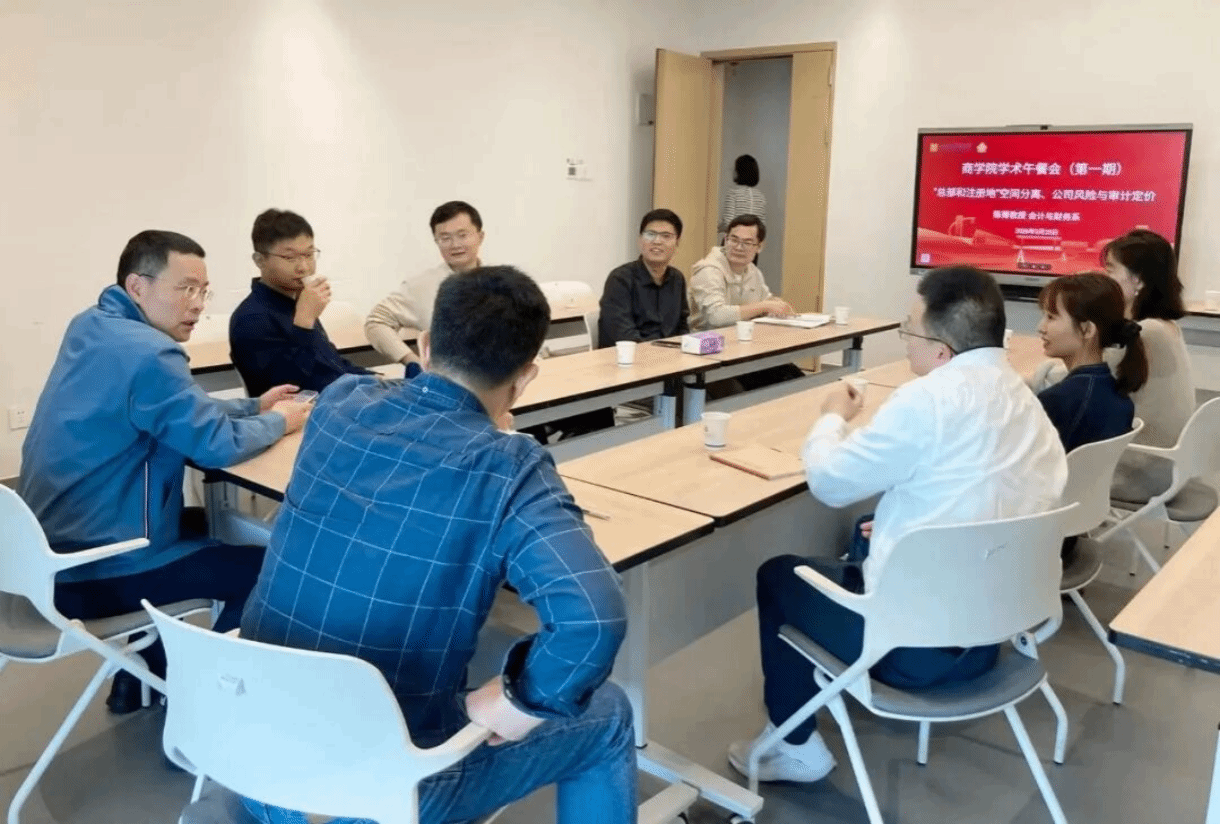3月25日中午,beat365英国官网网站C333会议室内气氛热烈,由学院工会牵头组织的首期学术午餐会顺利举办。本次活动以“‘总部和注册地’空间分离、公司风险与审计定价”为主题,由会计与财务系陈菁教授主讲,吸引了20余名教师参与。学院工会通过搭建这一轻松开放的交流平台,不仅促进了教师间的学术思想碰撞,更为未来科研与育人工作的深度融合奠定了坚实基础。
