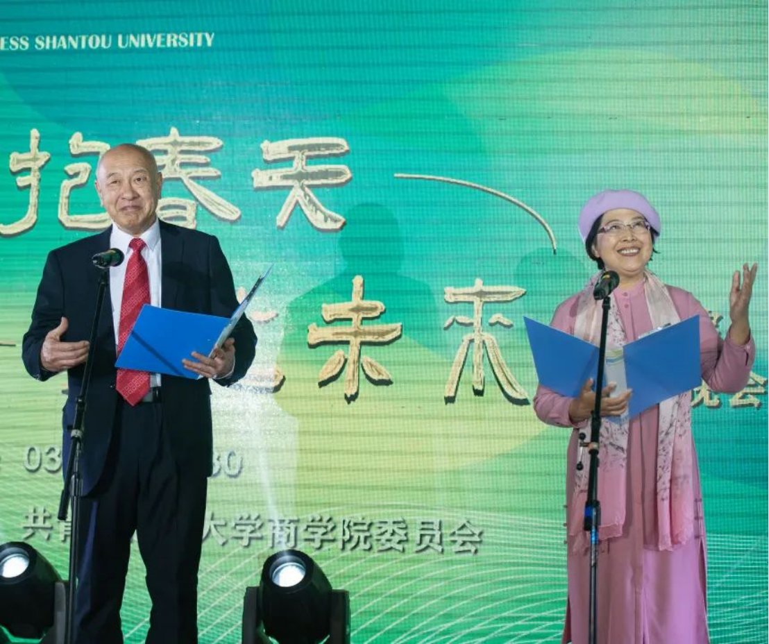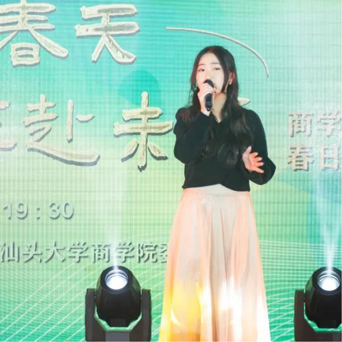 除了上面high翻全场的唱、跳、rap,晚会还特别邀请了beat365英国官网网站退休老师庄丽雯老师、广东省朗诵协会会员萧笛老师,为全体师生带来优美婉转的朗诵节目——《我有一个春天》,带领师生沉浸式感受春的气息。