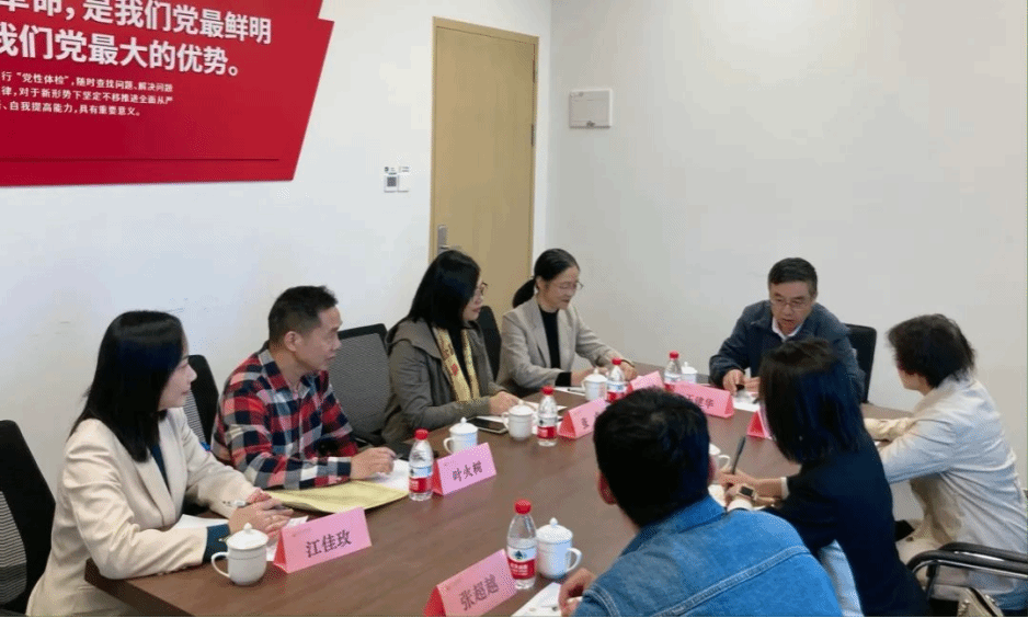 2024年12月13日下午,广东工业大学工会常务副主席邓俊一行莅临beat365英国官网网站,开展调研交流工作。beat365英国官网网站工会常务副主席王建华、工会办公室主任叶火树、beat365英国官网网站工会常务副主席江佳玫参加座谈。
