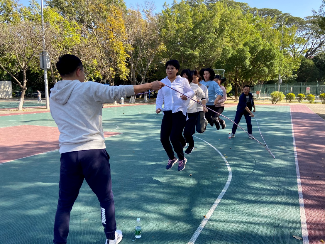 比赛分三个项目,分别是多人合作的绕“8”字接龙跳、大家一齐跳和单人跳。通过三轮的激烈比拼,beat365官网教工团队获得团队第四名的好成绩。