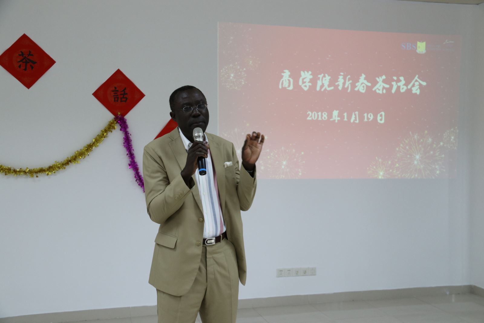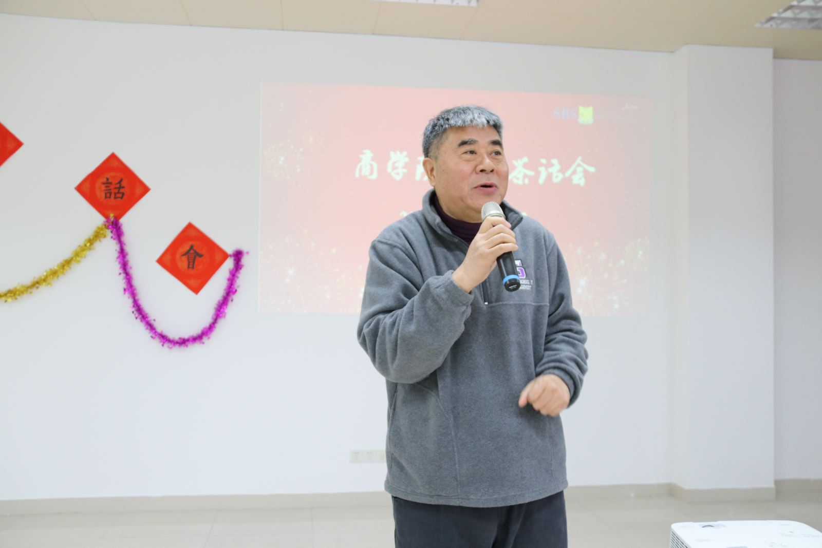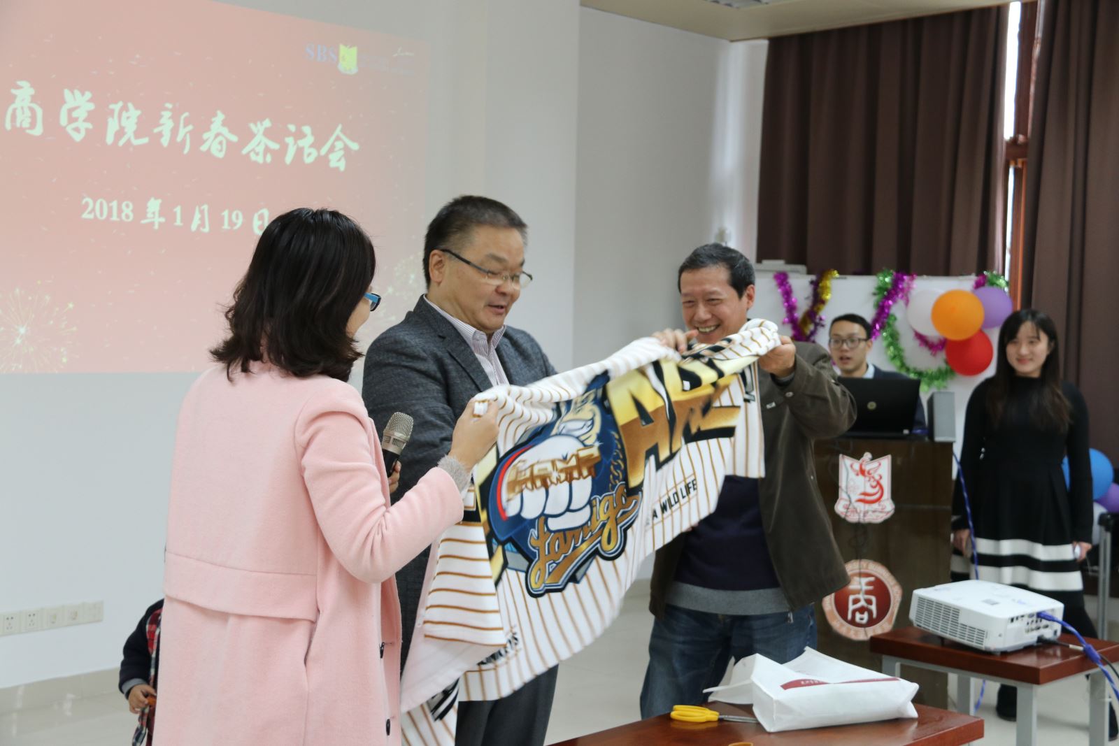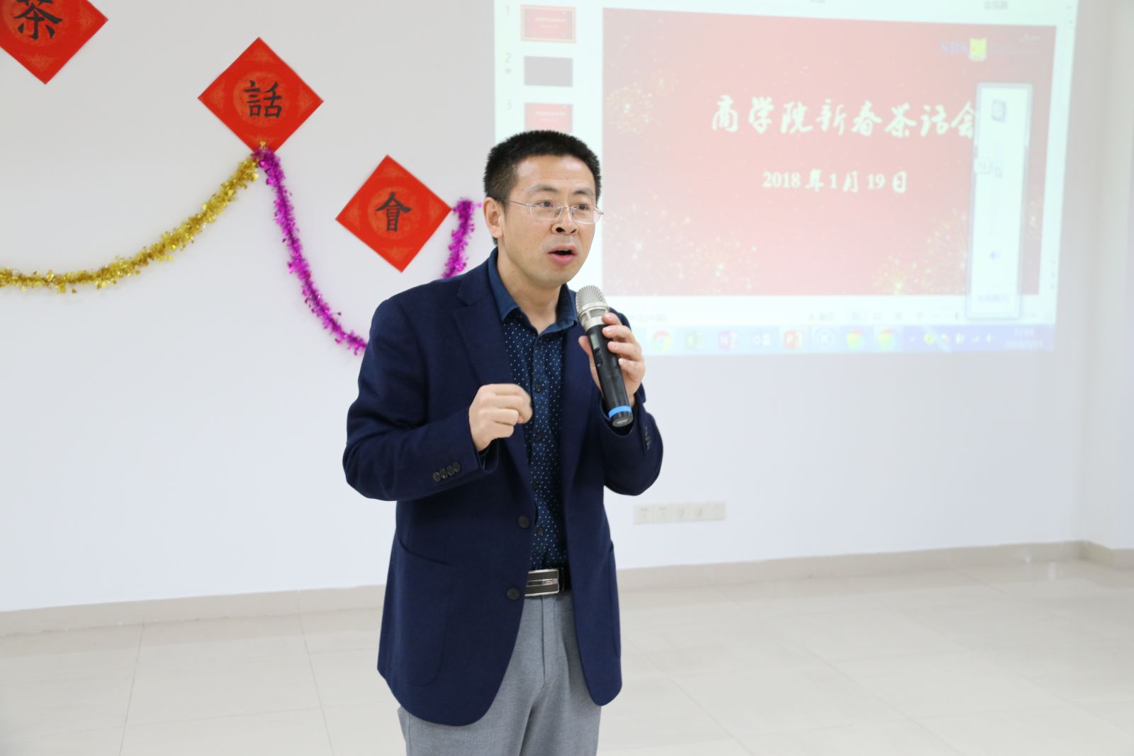 茶话会伊始,徐二明院长、高见书记和学院工会主席林华叶老师分别致辞,与大家一同展望朝气蓬勃的2018年并送上新春祝福。