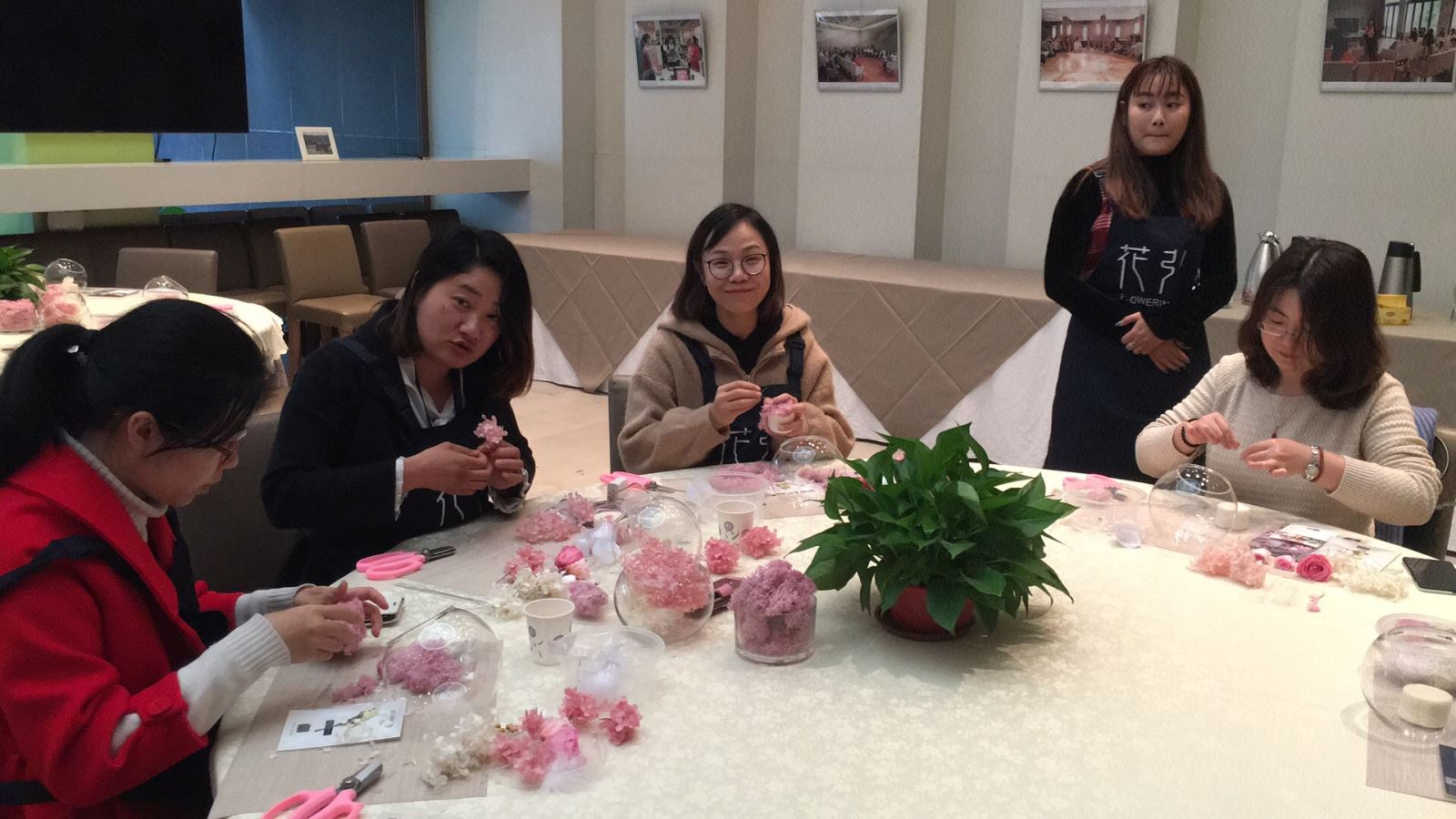 一年一度的“三·八”妇女节如约而至,趁着春日,beat365英国官网网站工会和淑德书院于3月8日下午联合举办“FLOWERING”永生花制作工作坊。在汕头FLOWERING花艺师细致地讲解制作技巧后,大家已经跃跃欲试,老师们围坐在一起,边修剪制作边唠磕,相当惬意和放松。不知不觉一件件漂亮的作品陆续亮相,捧着自己亲手完成的作品,老师们心头甜如蜜!在温馨静谧的淑德书院,老师们不仅收获了永生花和技艺,更收获了难忘的体验和乐趣!