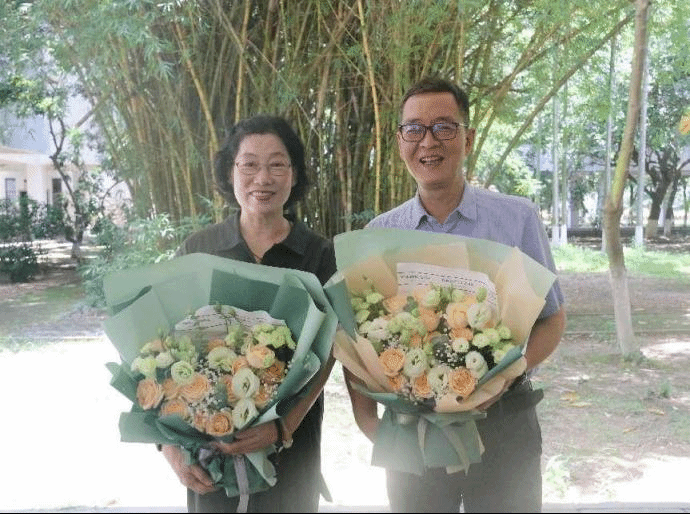 最后,党委书记邹志波、院长梁强、副院长郭功星以及胡少东教授向两位教授赠送荣休感谢状并送上鲜花,诚挚祝愿两位教授芳华依旧,幸福安康!