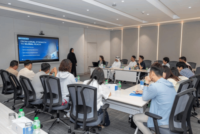 访学期间,学员们先后走进阿布扎比工商会、阿布扎比投资办公室、迪拜国际金融中心及迪拜南城自贸区,通过沙盘讲解、互动问答与园区参观等丰富形式,深度探访中国落地企业的运营实况。从政策解读到市场洞察,大家对中东地区的商业环境、投资机遇及准入规则形成了全面且深入的认知。