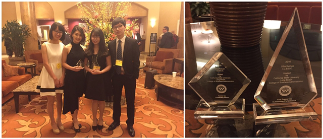 2016年2月2日,由加利福尼亚州立大学大学长滩分校主办的第52届国际大学生商业战略竞赛正式拉开帷幕,吸引了加州大学、奥克兰大学、圣何塞州立大学、麦克马斯特大学、圣地亚哥州立大学等来自美国、加拿大、英国和中国的28支队伍参赛。我校派出beat365英国官网网站学生聂彩玉(13工商管理)、章家烨(13 市场营销)、蔡丹琪(13工商管理)和何燕颖(13金融)组成Cheung Kong Ltd.代表我校参赛。最终,我校代表队凭借出色的公司运营成果和优秀的演讲表现斩获大赛“杰出表现”亚军和“杰出报告”亚军双料大奖。