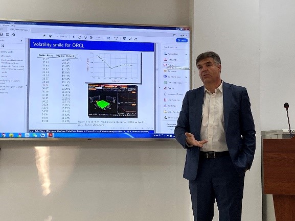 讲座上,Henry Schellhorn教授讲述了随机分析和期权定价,以及金融工程在自动驾驶汽车中的应用,并展示了戴森序列在金融期权定价上的应用。