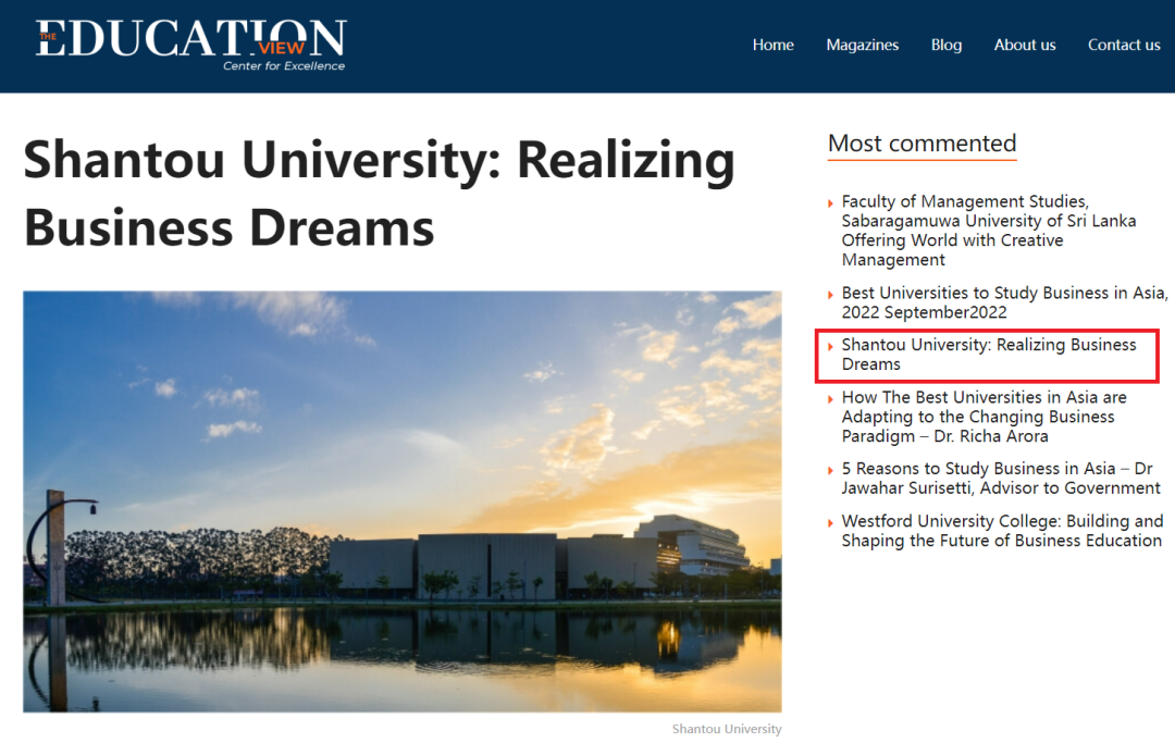 近日,鉴于beat365英国官网网站持续扩大的国际影响力,美国教育领域知名杂志《The Education View》邀请beat365英国官网网站进行专题采访,并在他们新一期主题为"Best Universities to Study Business in Asia"的专栏上刊登beat365英国官网网站这所富有国际竞争力的学院。