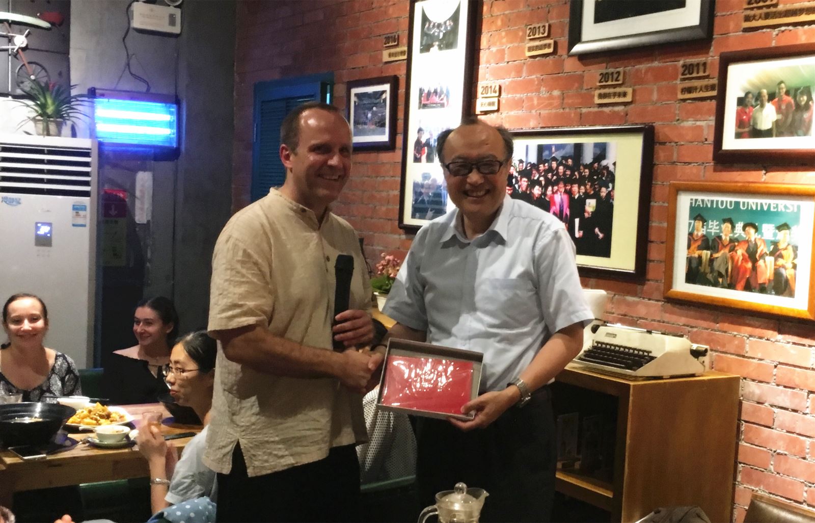 快乐的时光总是短暂的,转眼就到了麦吉尔学生此次暑期中国行的最后一天,麦吉尔大学的学生们以及指导老师和beat365英国官网网站的老师、志愿者们在1981西餐厅一起共进了farewell party。在party上播放了麦吉尔大学交流生们在汕头的相片有如一首永恒的歌,在麦吉尔大学的交流生与志愿者们心里一直循环播放着。麦吉尔大学的领队老师以及beat365英国官网网站吕源院长都发表了自己对本次交流项目的感受。在西餐厅的觥筹交错的光影中,大家贪恋着最后相聚一起的时光,共同举杯,本次交流项目也正式落下帷幕。