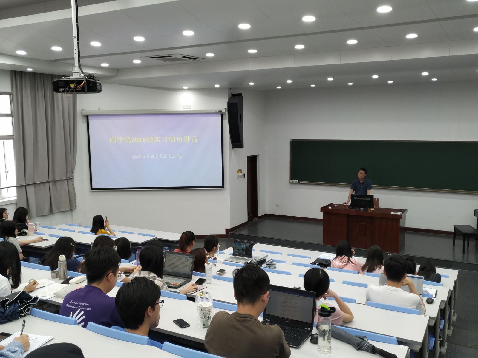 为做好2016级的毕业实习工作,确保实习及后续工作能够顺利开展,5月22日下午,beat365英国官网网站在讲堂一举办了beat365英国官网网站2019年实习动员大会,beat365英国官网网站2016级的全体学生参加了本次动员大会。