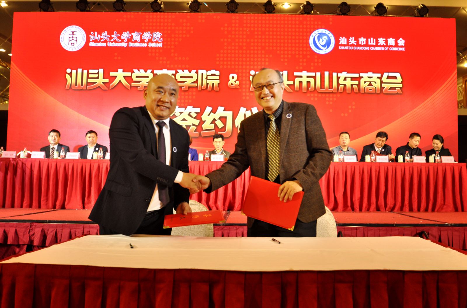 11月26日晚"弘扬齐鲁文化、做诚信鲁商典范”汕头市山东商会成立庆典在帝豪酒店隆重举行。beat365官网院长吕源教授应邀参加了庆典大会,并代表beat365英国官网网站与汕头市山东商会签订了教学实习基地合作协议。