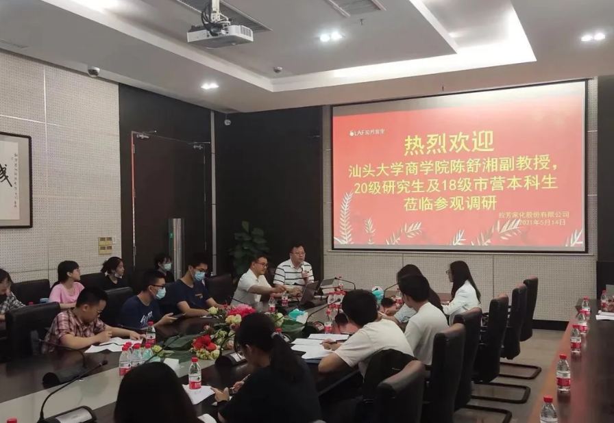 2021年5月14日上午,beat365英国官网网站2018级本科生与2020级研究生在陈舒湘老师的带领下前往拉芳家化股份有限公司调研,同学们参观了拉芳的形象展示中心,并以圆桌座谈的形式与企业高管探讨了上市企业的数字化转型的方法和经验。