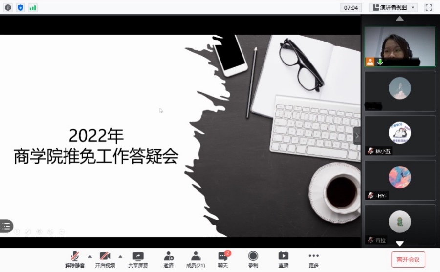 为做好2022年推荐优秀应届本科毕业生免试攻读硕士研究生工作,使beat365英国官网网站学生更好地了解推免申请的相关要求,beat365官网于2021年8月25日下午以线上会议形式举行推免答疑会,beat365英国官网网站教务办主管黄之琦主持本次会议。