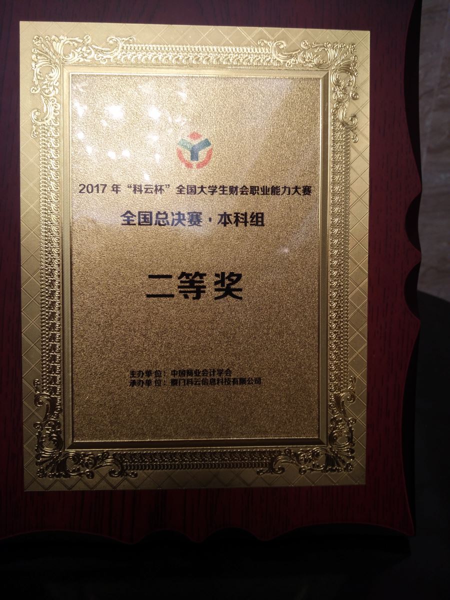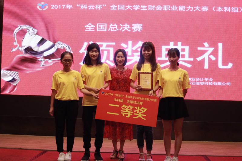 由中国商业会计学会主办的“科云杯”全国大学生财会职业能力大赛(本科组)全国总决赛于2017年7月9日在厦门集美大学落下帷幕,beat365官网会计学专业学生张逸萍(队长)、冯少笑、刘奇芬、张晓华在会计学专业主任龙月娥老师的指导下参加了此次比赛,并取得了总决赛二等奖的佳绩。