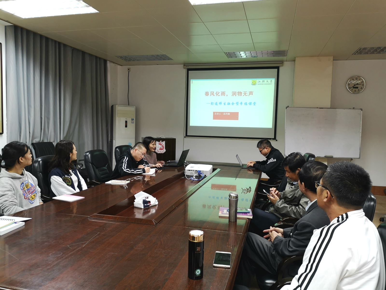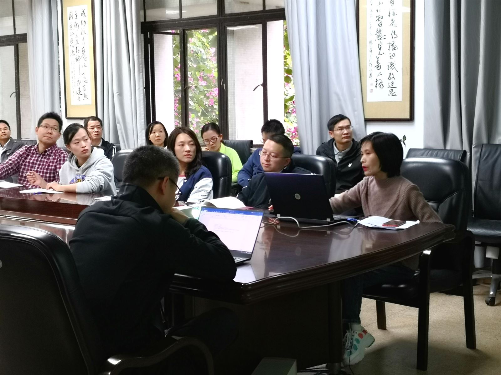 分享结束后,在座的老师围绕两个主题进行了热烈地讨论和交流。邹志波书记认为,教师应在课堂中启发学生学会思考,培养学生的逻辑思维能力,应向学生传递正能量。陈尔瑞老师就如何增加师生互动提出自己的看法及建议,认为在上课的时候应多拉近与学生的距离。