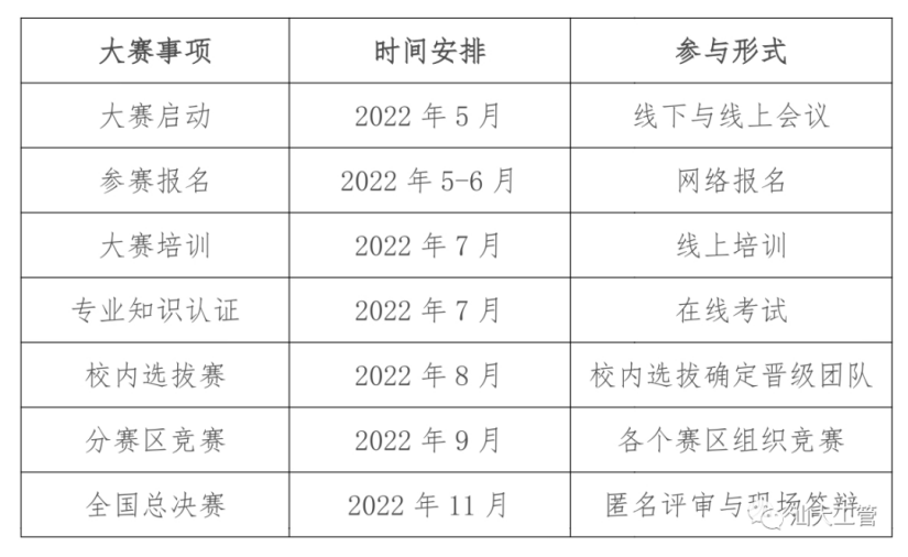 本次大赛分为校级选拔赛、分赛区竞赛、全国总决赛三个阶段: