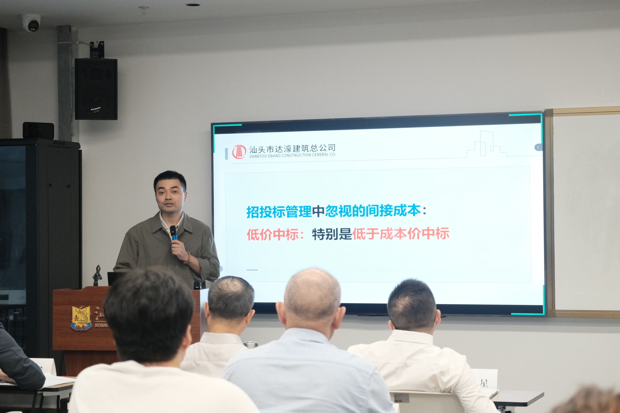 汕头市达濠建筑总公司陈跃经理分享了施工单位管理的全过程。他立足建筑行业一线实践,围绕项目投资管理、风险防控、全流程管控等核心议题,提出了破解实操难题的宝贵经验,为有志于投身工程管理领域的学生提供了极具针对性的实践指引。