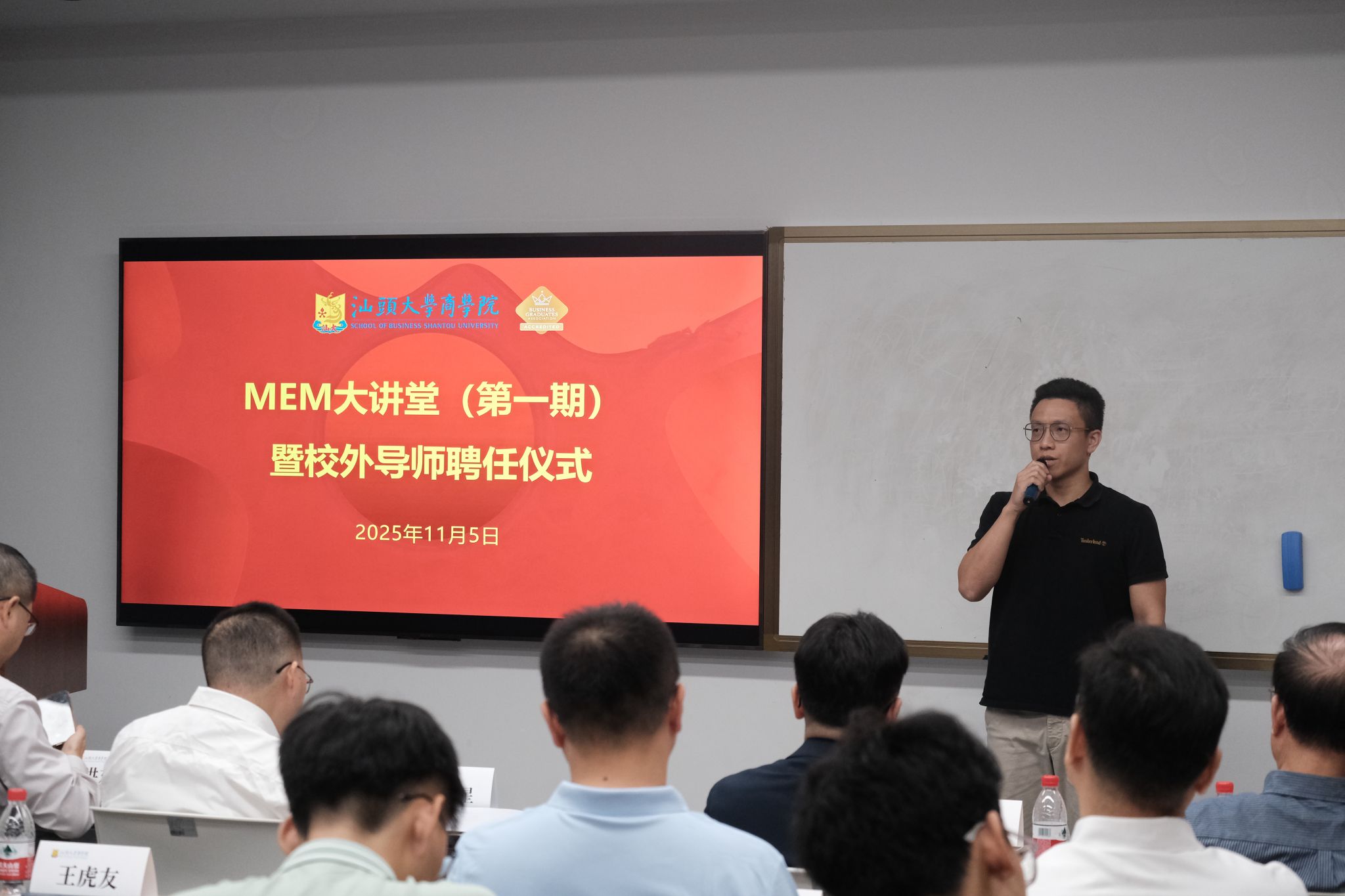 为促进高校学术资源与行业实践资源对接,落实专业学位研究生“双导师制”培养模式,2025年11月5日下午,beat365英国官网网站于东海岸校区行政楼328会议室举办beat365英国官网网站2025年研究生学术活动月之beat365英国官网网站AI前沿讲座——MEM大讲堂(第一期)暨校外导师聘任仪式。