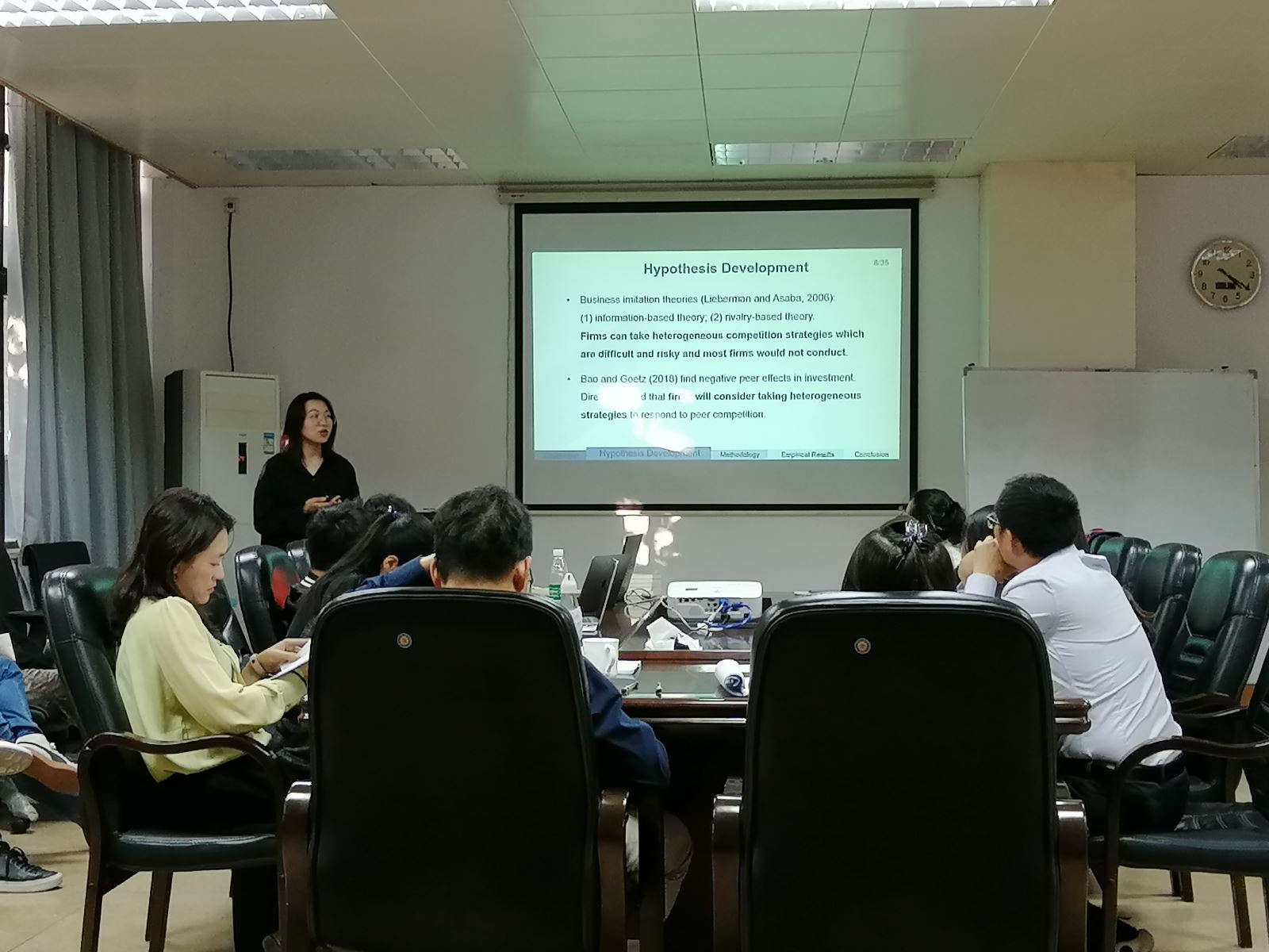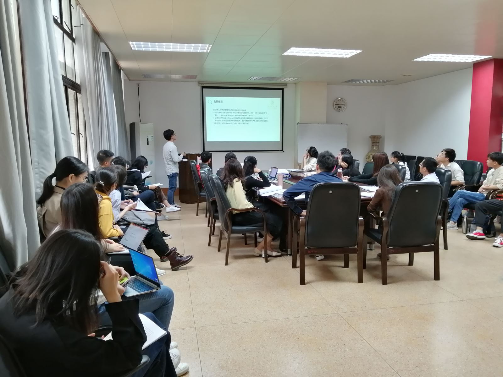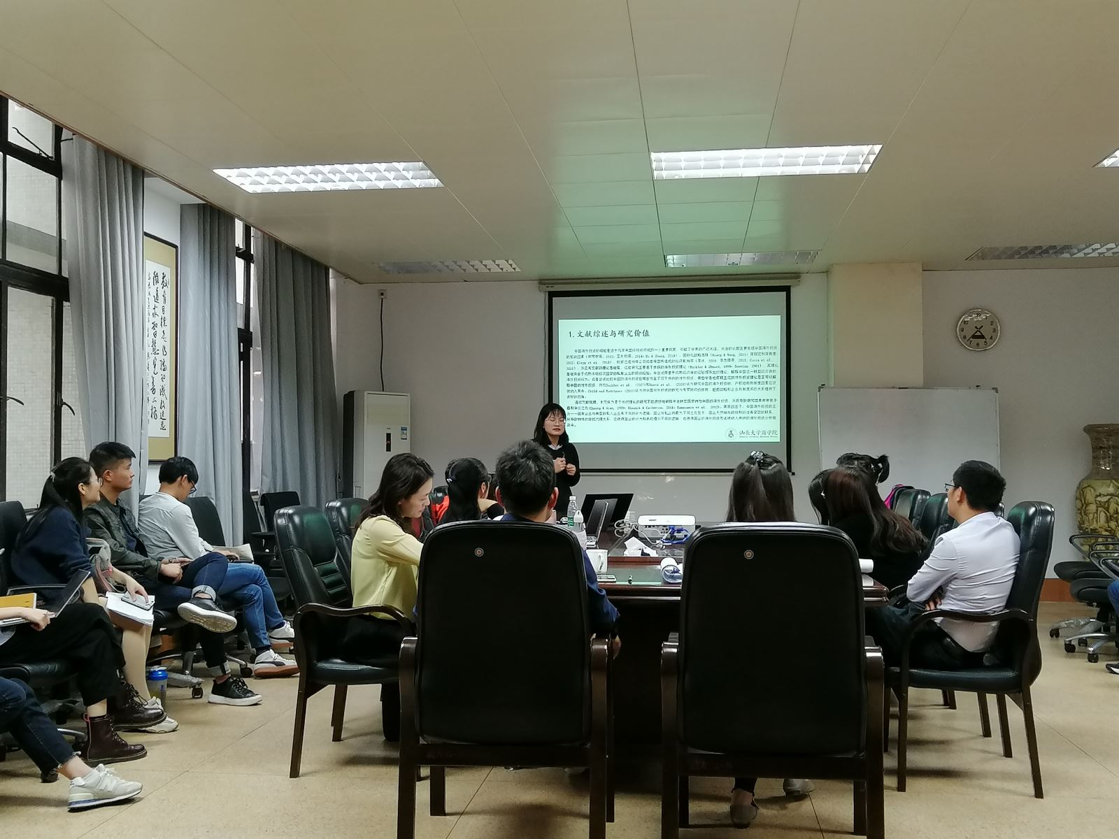 本次学术论坛共收到投稿论文13篇。学术论坛现场,王国鑫、林翠梁、龚婵娟、凡婷婷、谢婧、颜媛媛、李龙7位同学分别对论文进行深入讲解,评委老师对每篇论文进行细致点评,并提出了修改及论文投稿方面的建设性建议。现场研究生也各抒己见,讨论热烈。