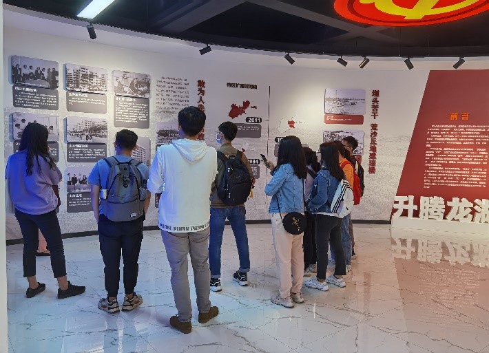 龙湖区是汕头经济特区的发祥地和核心城区。在龙湖新经济研究中心,研究生们从汕头经济特区扩围的1981、1984、1991、2011四个时间轴看特区的变化,学习龙湖区的特色发展模式以及发展优势,领略了特区发展的时代魅力、特区四十年建设的丰硕成果和特区为经济建设带来的质的飞跃。