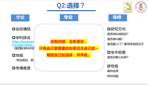 王国鑫结合自身经历,分享自己考博的心路历程,同时就如何参与科研工作进行了详细的解答。他建议硕士研究生在读期间,要多发表论文,多钻研学术。虽然学术之路很苦,但坚持下来会发现很多乐趣并乐于其中。