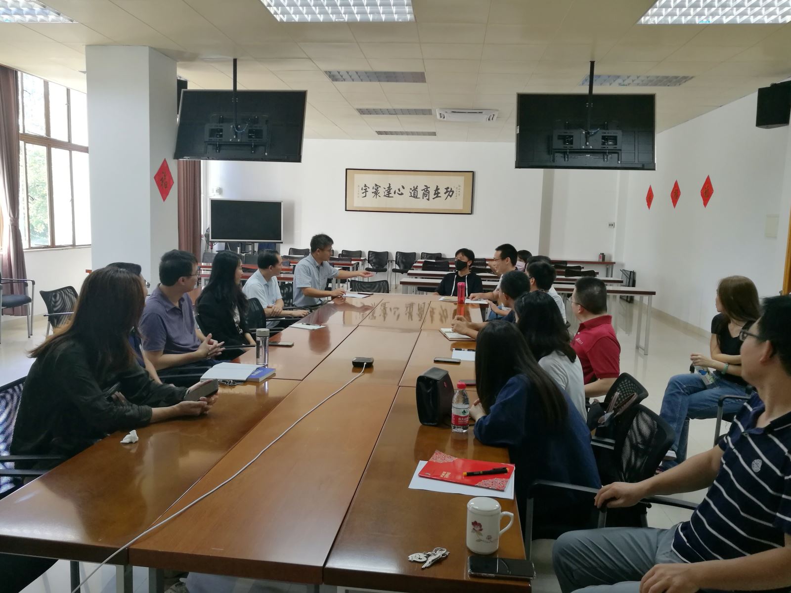 10月26日上午,企业管理系在文南三楼学术研讨室召开专题学习会议。会议由系主任周军杰老师主持。会上,老师们认真学习了习近平总书记重要讲话精神以及相关报道,深深感受到了敢闯敢试、敢为人先、埋头苦干的深圳特区精神,以及党中央以更大魄力在更高起点上推动改革开放的坚定决心。跟随着习近平总书记的视察之旅,老师们还领略到了富有魅力的潮汕历史文化,感受到改革开放以来潮汕企业的加速创新发展,以及习近平总书记对广大人民群众的殷切关怀。看到广东走在祖国全面建设社会主义现代化国家新征程的前列,老师们为广东、为国家的发展感到自豪,为党育人、为国育才的使命感也油然而生,纷纷发表感言,表示作为教育工作者,必须落实立德树人根本任务,以科研创新驱动学科发展,推动学校和学院快速发展贡献力量,为国家建设培养高素质的时代新人。