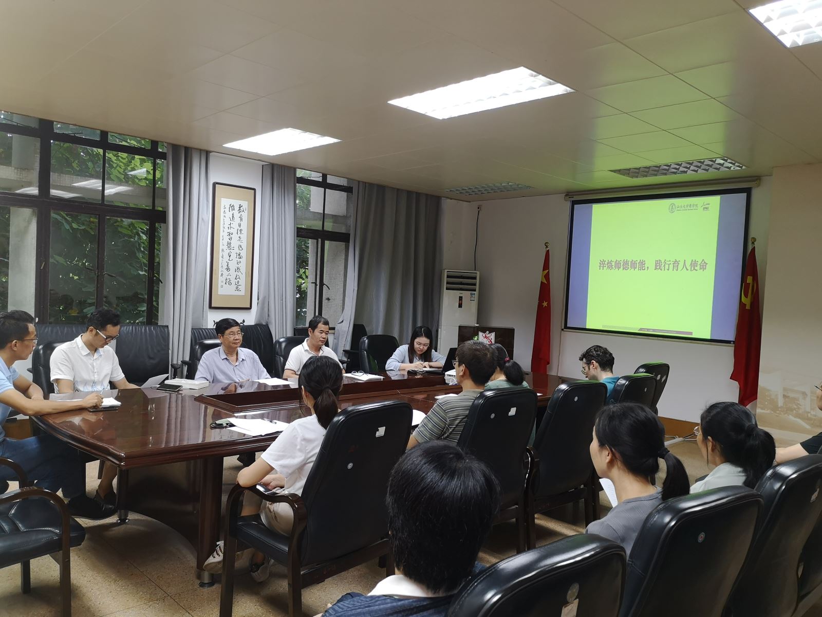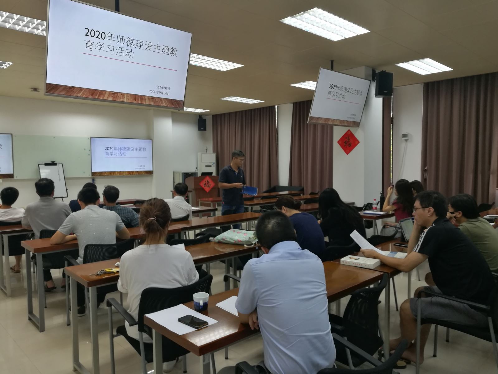 2020年9月30日下午,企业管理系组织全系教师开展师德建设主题教育专题学习活动。与会教师在会上深入学习了《新时代高校教师职业行为十项准则》,并就如何发挥个人良好的师德师风、遵纪守法和关心爱护学生等问题,展开了热烈地讨论。与会老师们积极发言,表达了各自对教师职业行为准则和对师德师风的见解,主要有以下认识:一、把习近平新时代中国特色社会主义思想作为推动教育改革发展的强大思想武器;二、深入学习和理解《新时代高校教师职业行为十项准则》的内容,认识到教师应将教书育人和自我修养结合起来,言传身教;三、为人师表、应树立高尚师德风范,通过加强正面宣传和示范引导,弘扬社会正能量,保持遵纪守法、实事求是、清正廉洁作风;四、多关心学生的学习和生活,及时排解学生的负面情绪,引导学生向积极、乐观的方向发展。