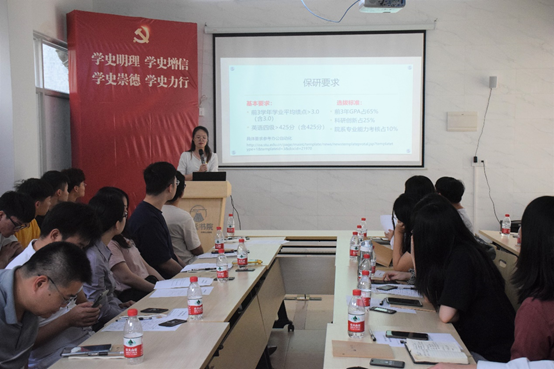 已确定留校工作的林锦丹同学则与同学们分享了保研经验。她提醒同学们,要提前了解学校保研的政策要求和有关信息,保研除了GPA要求,还有相关的科研创新以及院系能力的相关考核,大家要提前了解并认真应对,做到未雨绸缪。