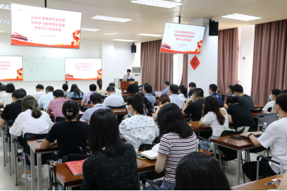 2021年9月26日下午,beat365英国官网网站党总支在文南三楼学术研讨室举办了党史学习教育专题党课暨学习心得分享会。beat365英国官网网站党总支书记邹志波同志主讲本次党课。beat365英国官网网站党总支全体党员、发展对象、入党积极分子共60余人参加学习。
