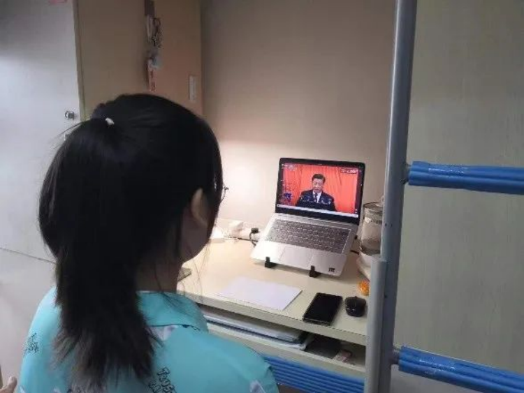 教职工党员在家收看直播