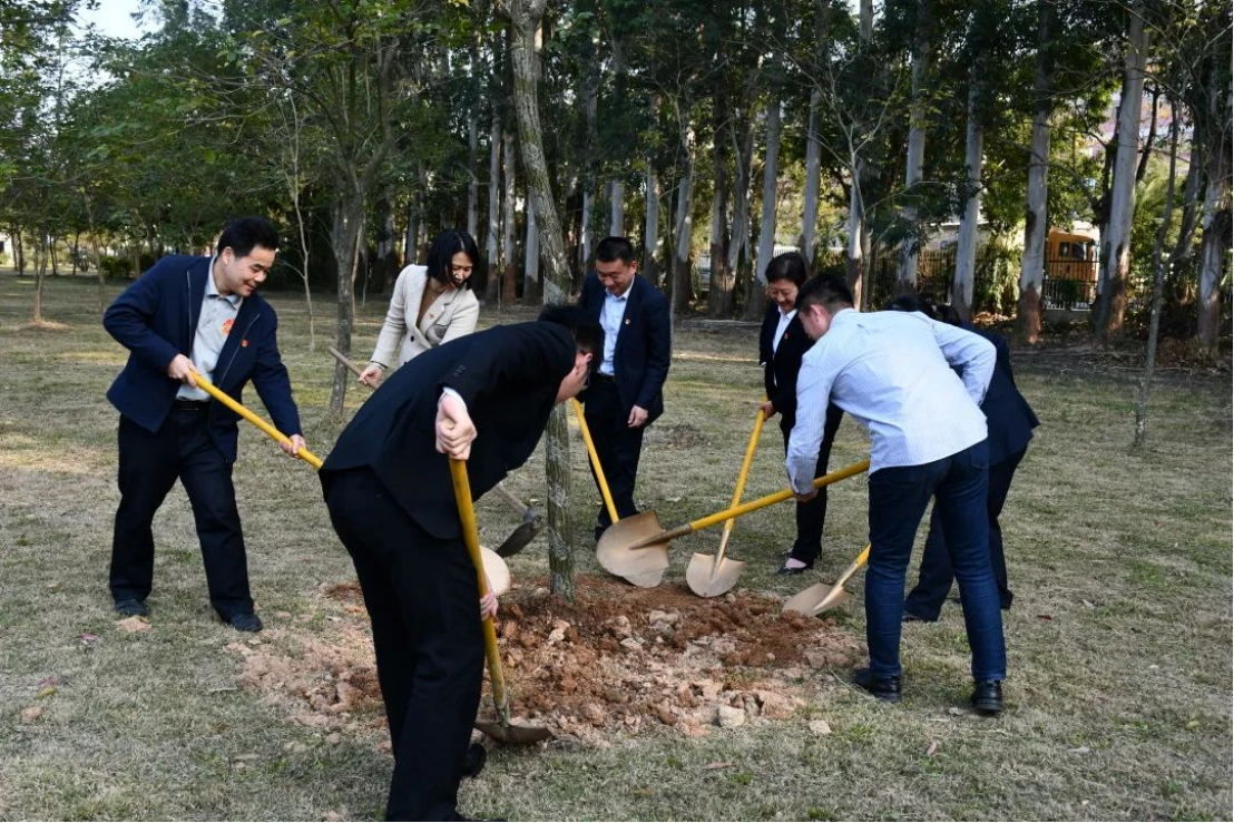 阳春三月,万木争春。三方共建单位开展“加快绿色转型·共筑绿美汕头”主题党日活动,来到beat365英国官网网站校友林开展植树活动,共建三方团结协作,配合有序,挖坑、扶树、培土、浇水有条不紊,齐心协力种下新树苗,播下绿色,播撒春的希望。共建三方通过植树的方式,用自己的双手栽植树木、孕育希望,真正为建设美好家园添绿增色。