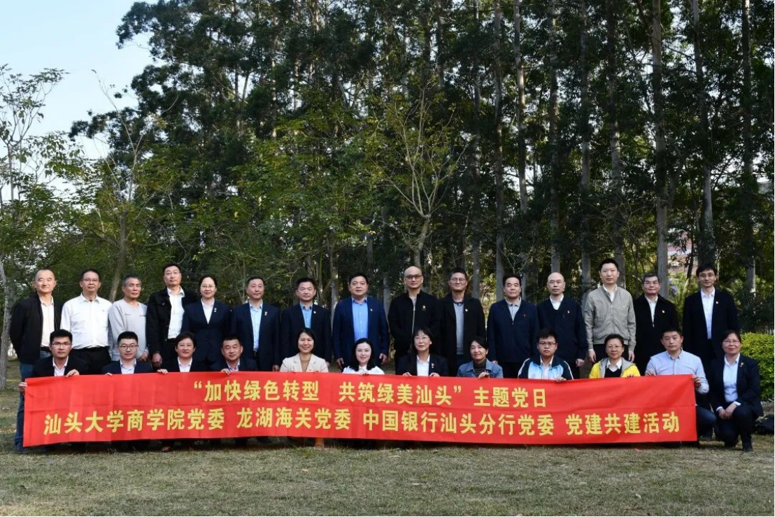 为实现党建优势互补,共谋发展良局,在第45个植树节来临之际,beat365英国官网网站、龙湖海关、中国银行汕头分行三方开展题为“加快绿色转型·共筑绿美汕头”党建共建活动,推动建立共建共治共享党建模式,以高质量党建引领学校事业发展。