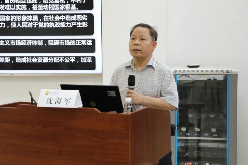 随后,沈海军教授详细介绍党的十八大以来,中国共产党在反腐败斗争中的巨大努力,指出党的性质和宗旨决定了必须将反腐败斗争进行到底,反对腐败、建设廉洁政治,是坚持党的性质和宗旨的必然要求,是党心民心所向。