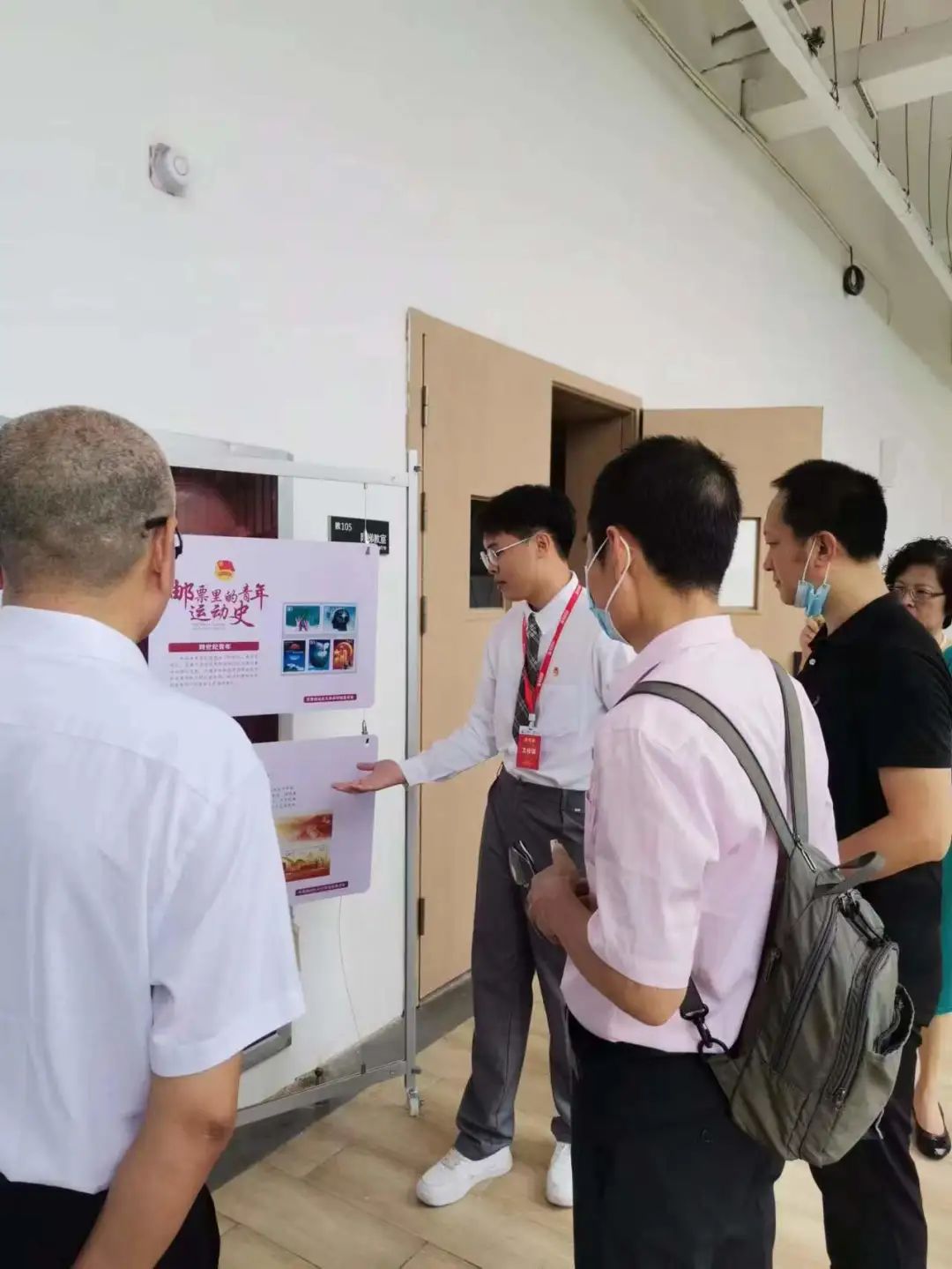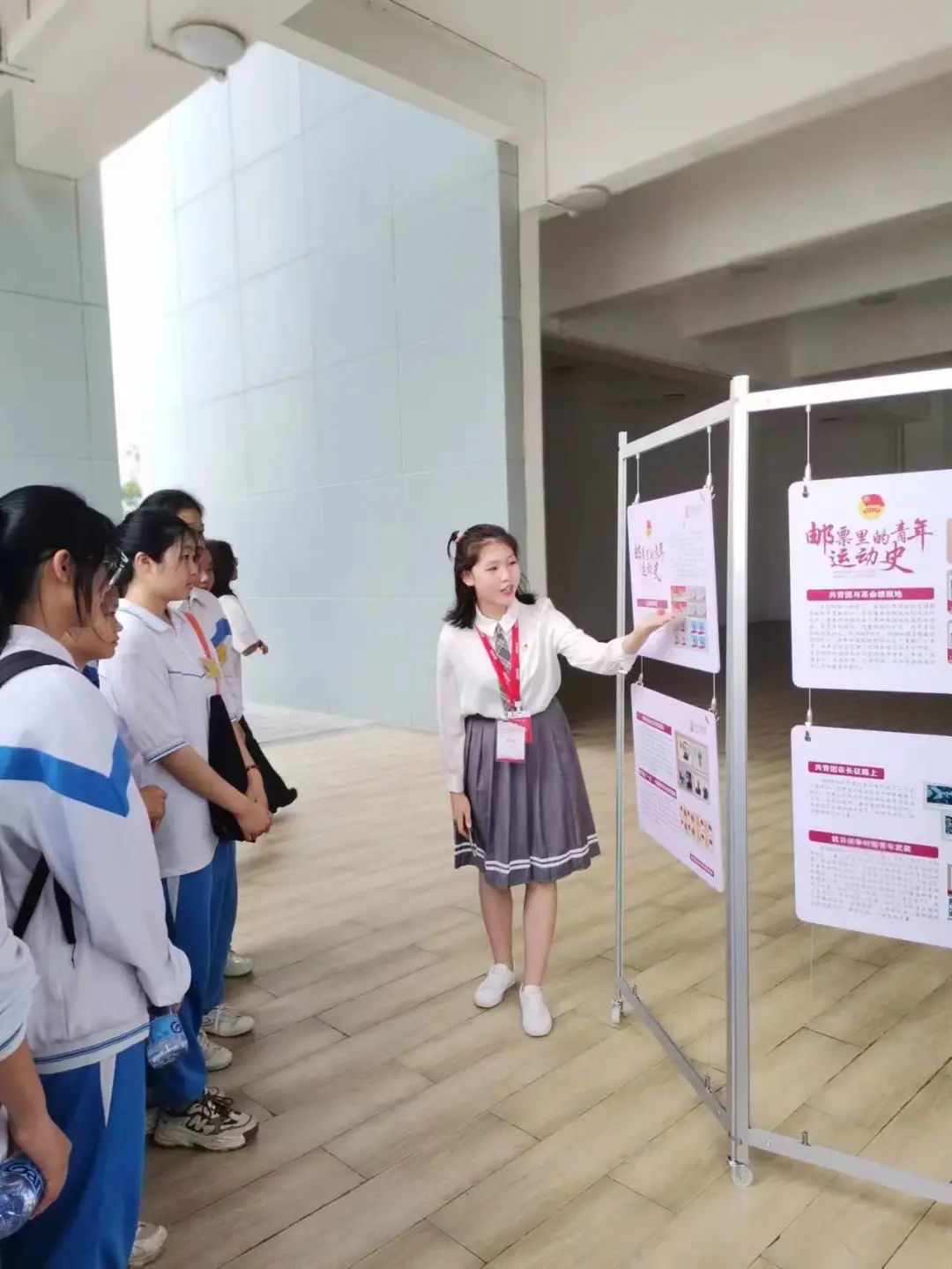 图4党史宣讲员向中学生宣讲邮票里的党史