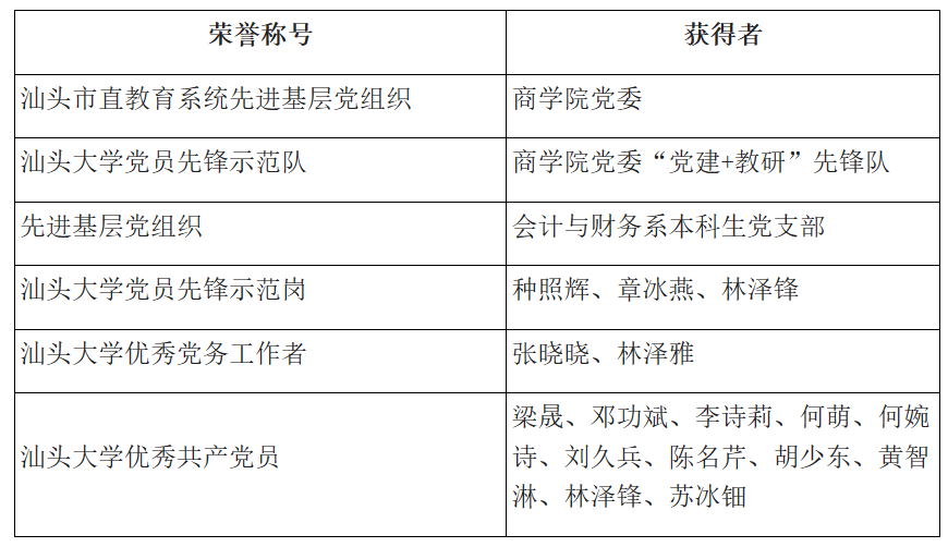 在此次表彰大会中,beat365英国官网网站党委获“2023年汕头市直教育系统先进基层党组织”荣誉称号;梁晟等11名党员同志(邓功斌、李诗莉、何萌、何婉诗、刘久兵、陈名芹、胡少东、黄智淋、林泽锋、苏冰钿)荣获“beat365英国官网网站优秀共产党员”称号;张晓晓、林泽雅同志荣获“beat365英国官网网站优秀党务工作者”称号;会计与财务系本科生党支部获“beat365英国官网网站先进基层党组织”荣誉称号。会上,学校党委对首批“党员先锋示范岗”“党员先锋示范队”予以授牌,beat365官网种照辉、章冰燕、林泽锋同志获颁“beat365英国官网网站党员先锋示范岗”;beat365英国官网网站党委“党建+教研”先锋队获颁“beat365英国官网网站党员先锋示范队”,以激励基层党组织和广大党员在学校高质量发展中勇立潮头、勇挑重担。