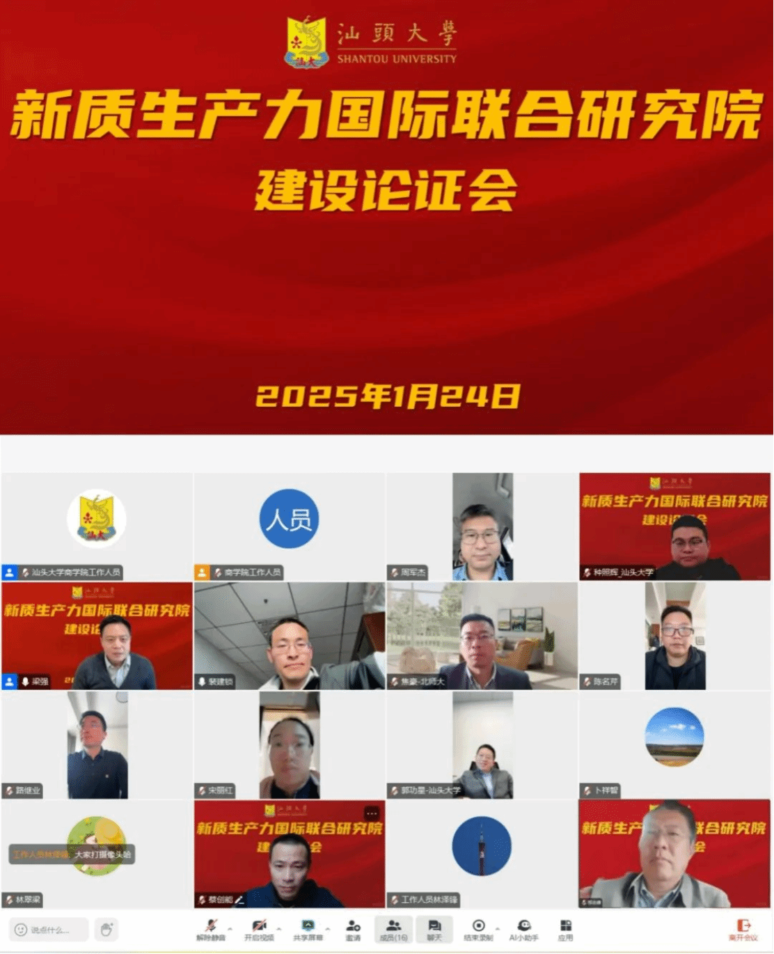 2025年1月24日上午,新质生产力国际联合研究院建设论证会通过腾讯会议在线顺利举行,beat365英国官网网站党委副书记、校长郝志峰教授出席并致辞,中国人民大学应用经济学院副院长裴建锁教授、北京师范大学焦豪教授作为特邀专家出席本次论证会。本次活动由beat365英国官网网站院长梁强教授主持,beat365英国官网网站各平台负责人及成员参与交流。