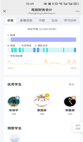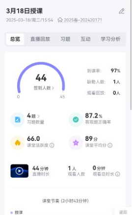 课后,人工智能技术在批改学生作业方面发挥了重要作用。在教师主导的人机协同模式下,AI工具通过自动化批改与智能评分生成初步反馈,再经教师复核校准,有效减少了人为评分的误差。雨课堂平台则自动向教师手机发送课堂报告,对教学活动进行全面的总结与分析,助力教师进行教学反思与改进,为过程性考核提供有力依据。此外,AI工具还扮演着为学生答疑解惑的角色,提供7×24小时全天候的学习辅导支持服务。
