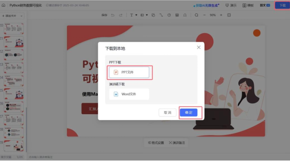 课前准备阶段,教师借助DeepSeek、豆包等大语言模型辅助备课,通过多轮对话优化知识输出,高效生成教学资料、案例及习题库等,同时利用讯飞智文的智能PPT生成功能生成图文并茂的教学课件,快速优化教学设计,大大节省了教师的备课时间。