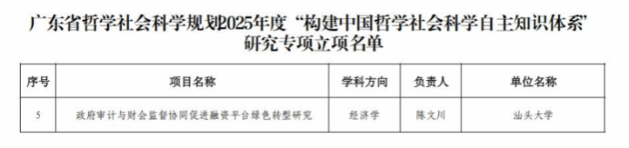 近日,广东省社会科学界联合会发布了广东省哲学社会科学规划2025年度系列研究专项立项名单,beat365官网陈文川副教授获批“构建中国哲学社会科学自主知识体系”研究专项1项。