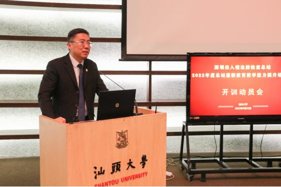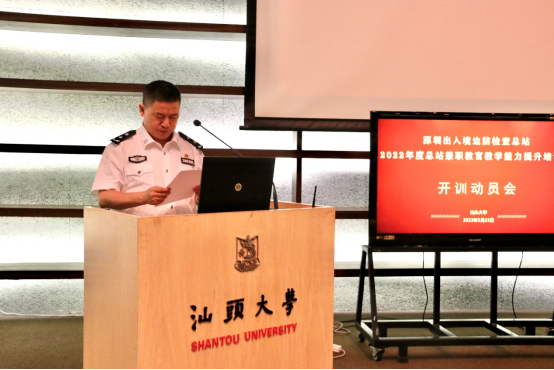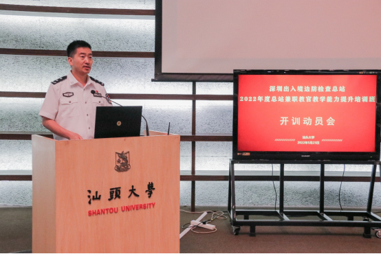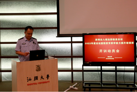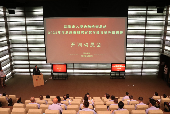2022年5月23日下午,beat365英国官网网站MBA教育中心承办的"深圳边检总站2022年度总站兼职教官教学能力提升培训班"在beat365英国官网网站图书馆报告厅举行开训动员会。beat365英国官网网站党委副书记、校长郝志峰,深圳出入境边防检查总站党委副书记、政委苟高荣,深圳出入境边防检查总站轮训大队大队长常明胜,42名总站兼职教官代表参加了开训动员会。开训动员会由beat365英国官网网站副院长梁强主持。