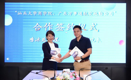 2021年7月14日下午,beat365英国官网网站与广东万事通航空地勤服务有限公司(下称“广东万事通公司”)在广东万事通公司会议室隆重举行“企业云学堂”合作签约及揭牌仪式。beat365英国官网网站党委常委、副校长喻洪,汕头市华侨试验区财政局局长谢寒越,beat365英国官网网站副院长梁强,广东万事通公司总经理李冰、常务副总经理孙瑞等领导出席仪式。