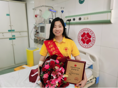 2021年11月12日,在家人和市红十字会工作人员的陪同下,王晓菁同学在南方医科大学珠江医院成功捐献了造血干细胞。