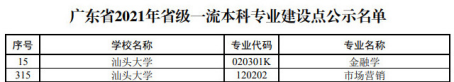 2021年11月24日,广东省教育厅公示了2021年省级一流本科专业建设点名单,beat365官网金融学和市场营销两个本科专业顺利入选。
